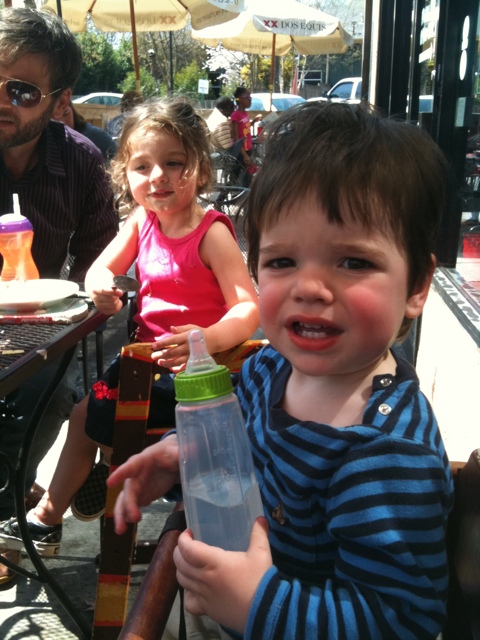 At lunch with Grandma, Grandpa, and Mama