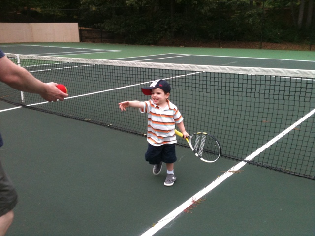 “Let’s do it!” (on the way to play tennis, racquet in hand)